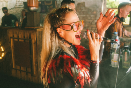 She finds her line inside the melody — sometimes whispered, sometimes wild.